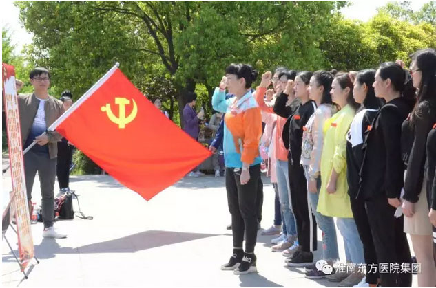 走出陳列館,大家進行了合影留念。接着全體黨員同志們在任梅書記的帶領下又來到了新四軍紀念林烈士紀念碑前。全體黨員肅立在新四軍烈士紀念碑前,面向烈士紀念碑駐足瞻仰,鞠躬緻敬、默哀緻敬。對那些為民族獨立、人民解放、國家富強、英勇獻身的革命先烈,緻以最崇高的敬意和深切的悼念。接着,共産黨員代表黃旭東、廖紅光為烈士們敬獻菊花,并鞠躬緻意。全體黨員、青年志願者和少先隊員們向革命先烈三鞠躬并集體默哀1分鐘。随後,由内科支部組織委員任彩雲主任帶領全體黨員重溫入黨誓詞。“我志願加入中國共産黨,擁護黨的綱領,遵守黨的章程……對黨忠誠,積極工作,為共産主義奮鬥終身,随時準備為黨和人民犧牲一切,永不叛黨。”
