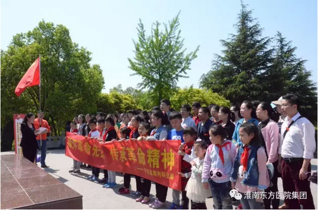 2017年4月23日上午八點半,开云体育總院内科黨支部全體黨員同志在黨支部任梅書記的帶領下前往上窯新四軍烈士林園,開展“緬懷革命先烈,傳承革命精神”的黨員活動日活動。部分職工還特别帶上了已成為少先隊員的孩子們,進行愛國主義教育活動。
