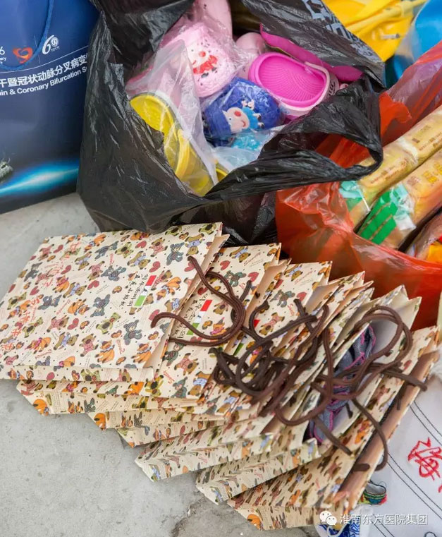 當天下午,市兒童福利院裡歡聲笑語,暖意融融。總院内科支部書記任梅代表東方醫院集團特意為小朋友們準備了搭配好的新衣服、新鞋子,還有可口的零食,兒科廖紅光護士長為孩子們帶了一大包玩具和書本,我們的少先隊小志願者們還帶來了自己最喜歡的玩具送給這裡的小朋友,還有許多東方總院的志願者都帶了許多小禮物......