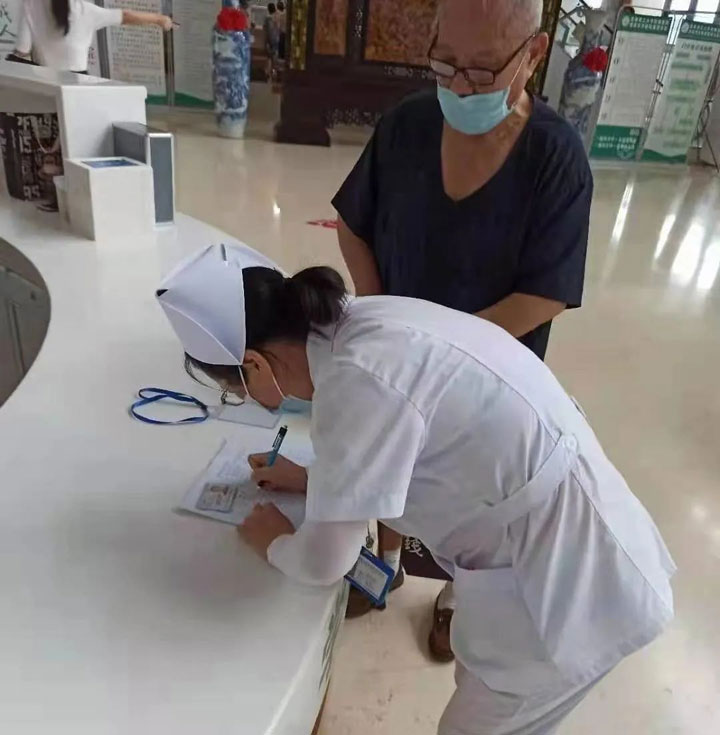 “孩子們都在外地上班,生病了自個兒來這大醫院看病,心裡都沒底,現在有你陪檢,我就安心了!”老大爺感動地和門診護士李銀娟說道。