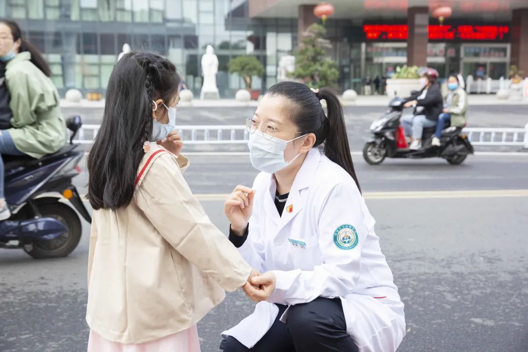 上午8點,李麗主任帶領本科室的醫護人員在總院外科一号樓下向路過的病人和家屬發放口腔健康知識宣傳手冊,進行口腔預防及口腔相關疾病的介紹科普。針對如何正确使用牙刷,李主任更是在現場對小朋友進行一對一的悉心指導。