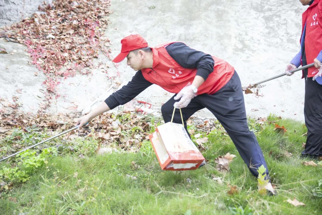 特别是一處水泥坡面上爬有幹枯的爬牆虎,影響美觀。劉豔華書記率先垂範,站在坡上用耙子将爬牆虎的枝條攏到一邊,再徒手将枝條扯斷。志願者們為了能盡可能的将草坪深處的垃圾清理幹淨,不顧腳陷在淤泥裡,草上的雨水将褲子沁濕,積極發揮奉獻精神,不怕髒不怕累,積極參與,認真清理垃圾、雜草、淤泥等。雖然天氣微涼,但大家幹得如火如荼,大汗淋漓。