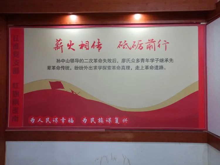 廖家灣有着光榮的革命傳統,大革命時期,廖家灣先後37人考入黃埔軍校;土地革命時期,廖家灣先後有23人加入中國共産黨;抗日戰争時期,廖家灣先後有13人以身殉國;解放戰争時期,國軍110師師長廖運周,在淮海戰役中,率全師起義,受到毛主席、朱總司令的嘉獎。一個中國普通的一個小村莊,譜寫了如此的傳奇與輝煌,讓黨員們贊歎不已。