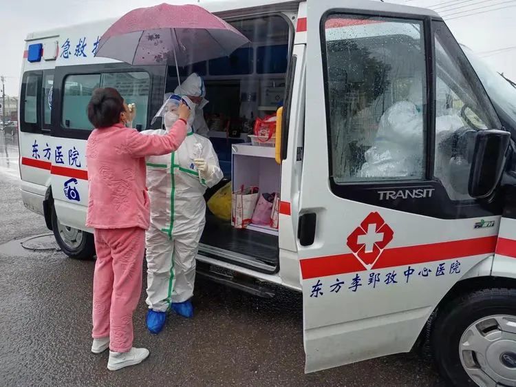 2022年3月20日,大雨如注,氣溫驟降,給外出采集工作帶來了阻礙,但是,采集員楊靜,駕駛員鄒孔利,120急救徐蕊,賀華早絲毫沒有被天氣影響,她們依然精神矍铄,厲兵秣馬,帶着抗疫的決心,走進了村莊,為各家各戶的村民進行核酸采集。