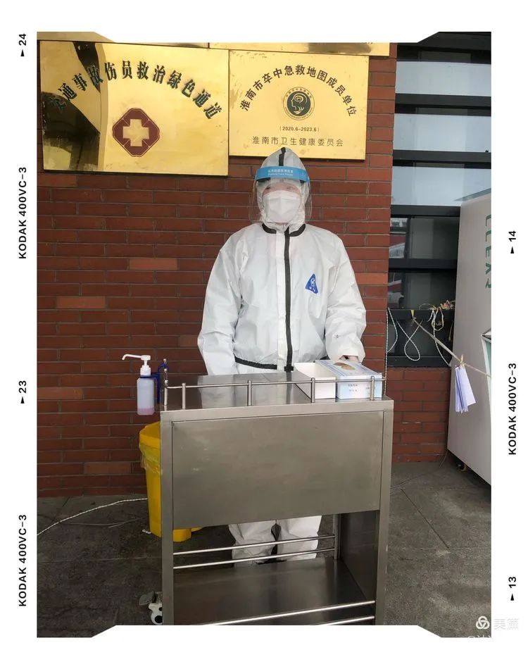 預檢分診是醫院的一道重要安全防線,須嚴格把好第一關。大門外面的發熱分診台的護士們每天穿着厚厚的防護服、戴着護目鏡、密閉的N95口罩,像極了奧特曼。她們仔細詢問每一位患者的病史、症狀體征及流行病學史,密切監測患者及陪護人員體溫,排除高度疑似患者,分流指引到發熱門診;一個上午班下來,全身淋漓大汗,護目鏡下視野模糊,有的同事臉上鼻梁上壓出了深深的紅印子;大家甚至為了節約防護服,不約而同選擇盡量不喝水,練就了憋住四個小時不用上廁所的”神功”。