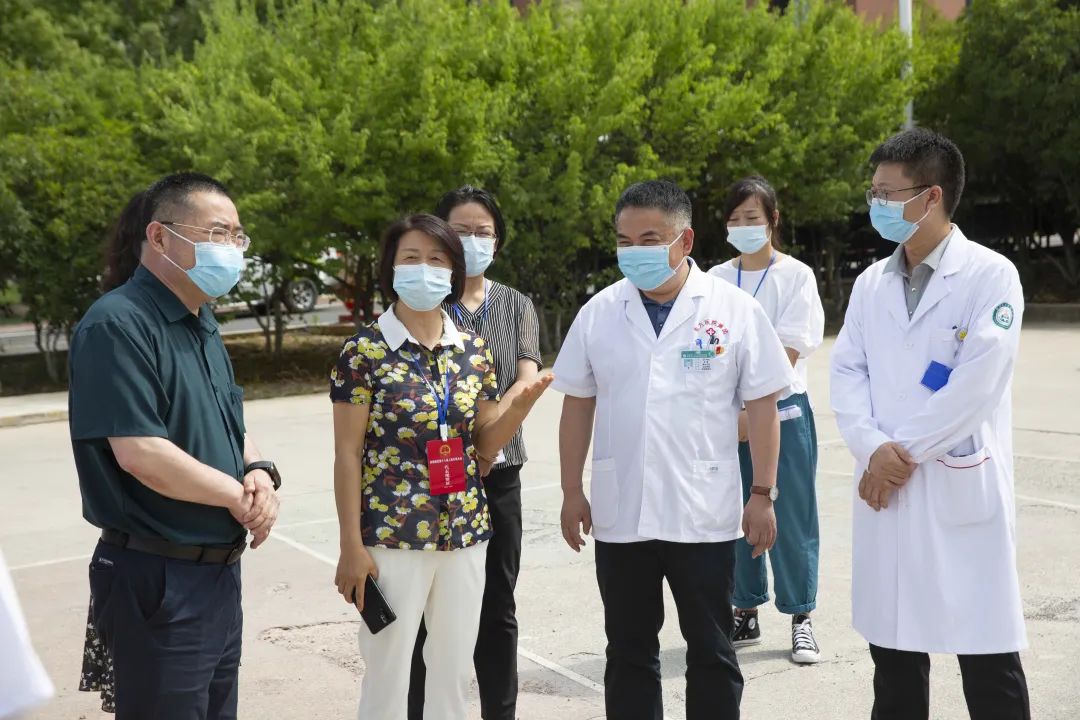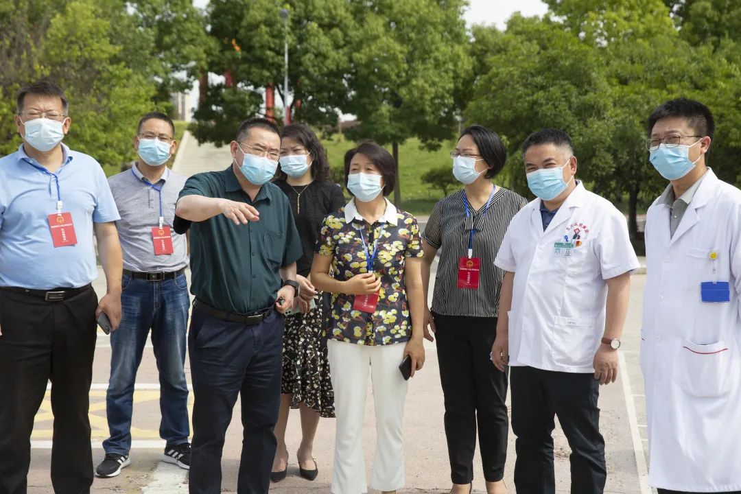 6月22日上午,淮南市田家庵區人大黨組成員、常委會副主任曹萍一行莅臨東方總院調研督導《傳染病防治法》實施情況及新冠肺炎疫情防控工作,开云体育總醫院副院長朱勝及相關部門領導陪同檢查。