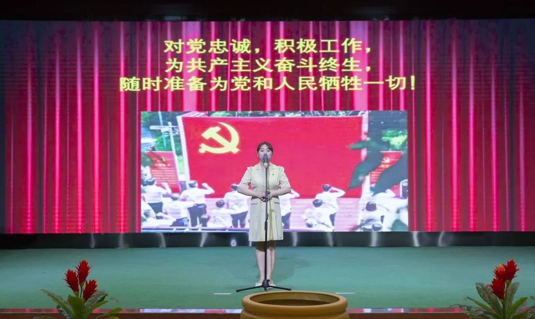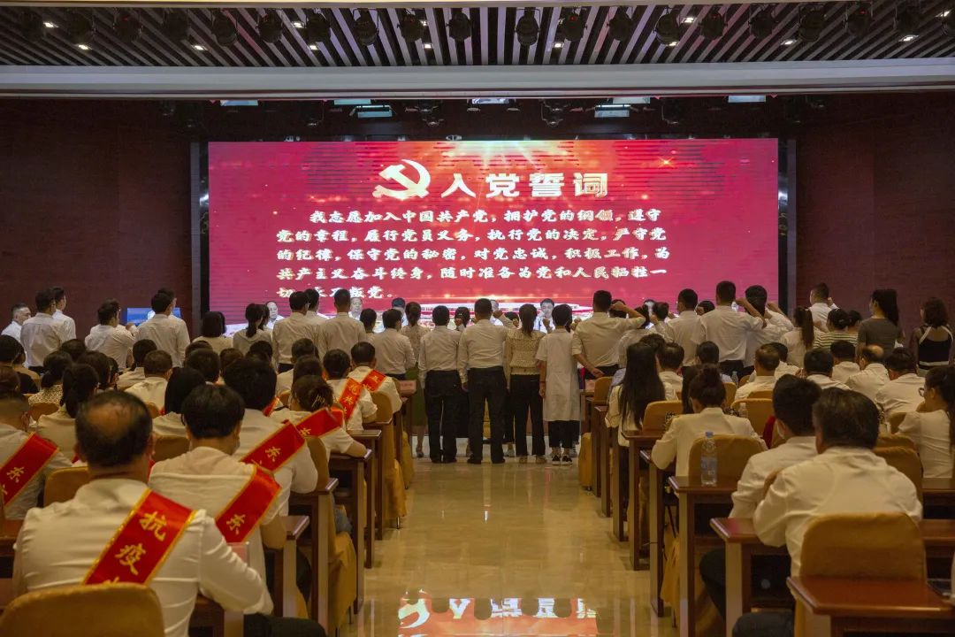 宣布會議紀律後,大會正式開始。醫院集團董事、總院副院長朱勝同志帶領45位預備黨員懷着崇敬的心情堅定地舉起右手,面對黨旗,莊嚴宣誓。