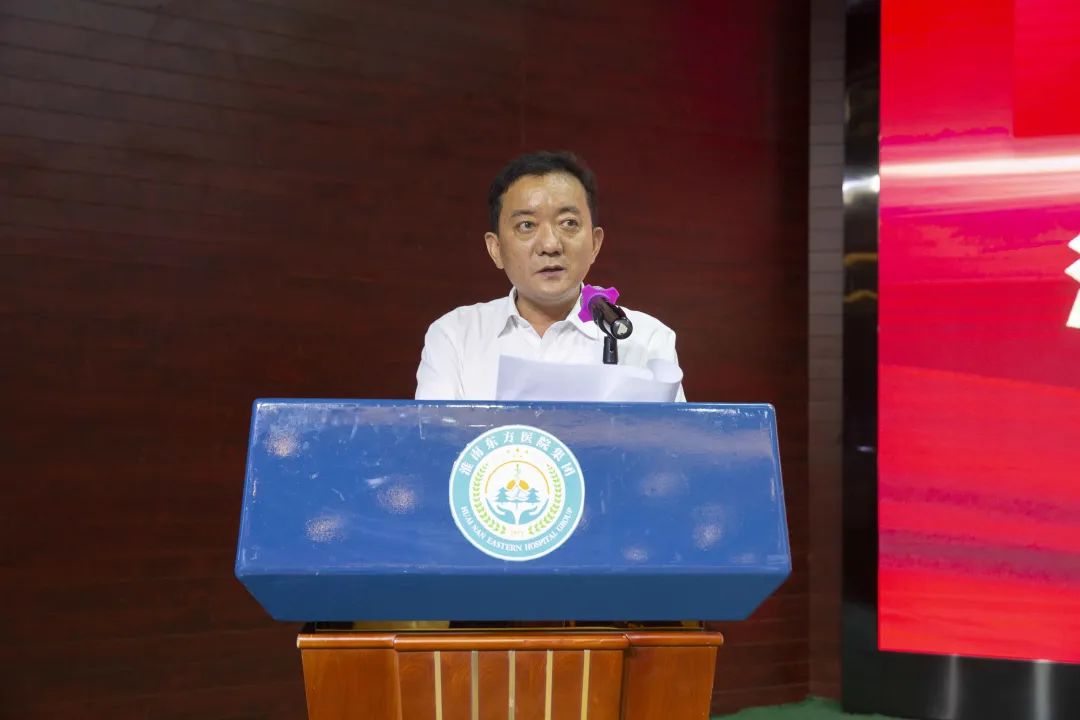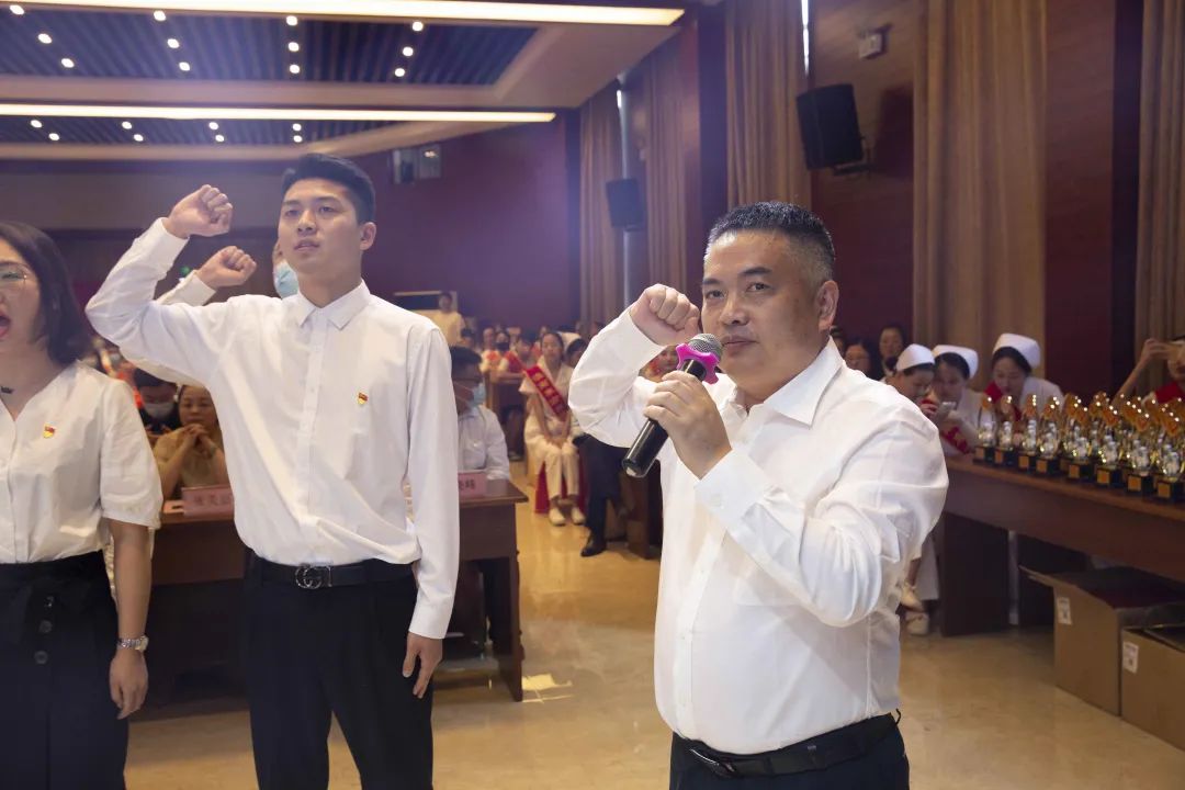 演講比賽結束後,醫院集團黨委副書記、董事長江永強主持東方醫院集團七一表彰大會,首先他開宗明義地指出,在中國共産黨一百零一華誕到來之際舉行慶祝活動,旨在深情緬懷黨的豐功偉績,由衷抒發對黨的無限熱愛,共同憧憬東方醫院發展的燦爛前景。同時借此機會代表集團黨委向全體幹部黨員緻以節日的問候和美好的祝願!向面臨疫情奮勇逆行的同志們緻以崇高的敬意!向長期以來紮根臨床一線,始終與集團保持共進退的同志們表示衷心的感謝!