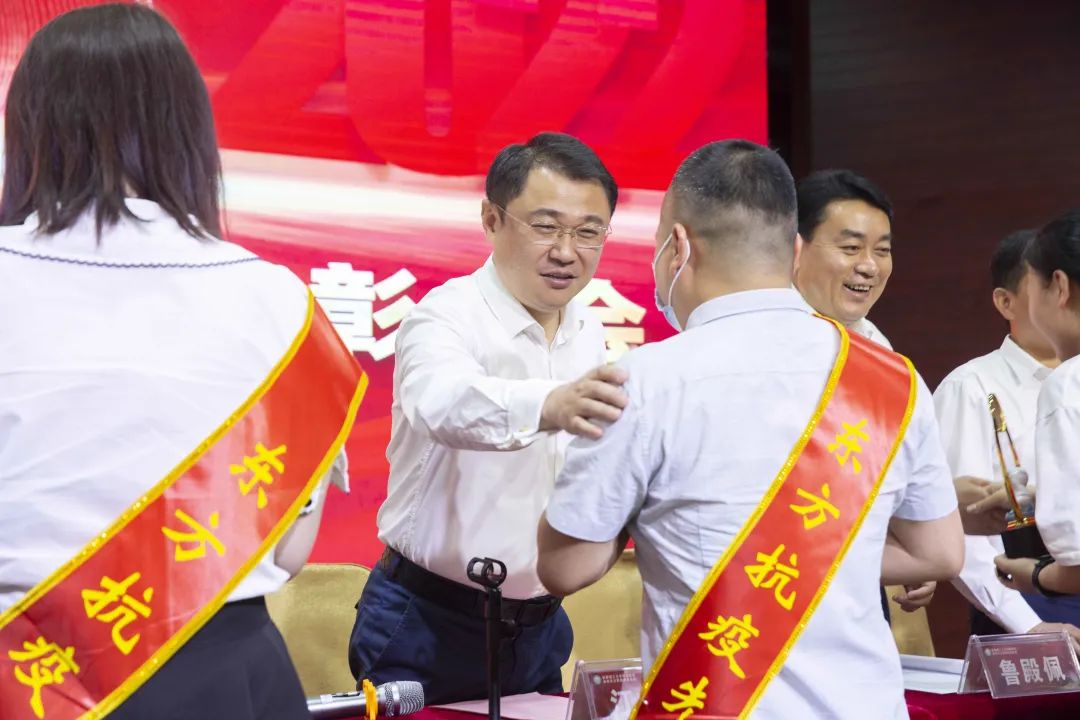 面對來勢洶洶的新冠疫情,集團上下毅然決然的投入到疫情防控工作中,黨員幹部沖鋒在前,發揮模範帶頭作用,帶領廣大醫務工作者堅守在核酸檢測、發熱門診、傳染病醫院及全市各隔離點等疫情防控最前線。其中湧現出一批臨危不懼、表現突出的先進集體和個人,為全市疫情防控做出了不可磨滅的貢獻,為醫院集團争得了榮譽,赢得了滿滿的正能量。集團副總經理魯殿佩同志宣讀《關于表彰東方醫院集團抗疫先進集體、抗疫先鋒和抗疫先進個人的決定》并進行頒獎。