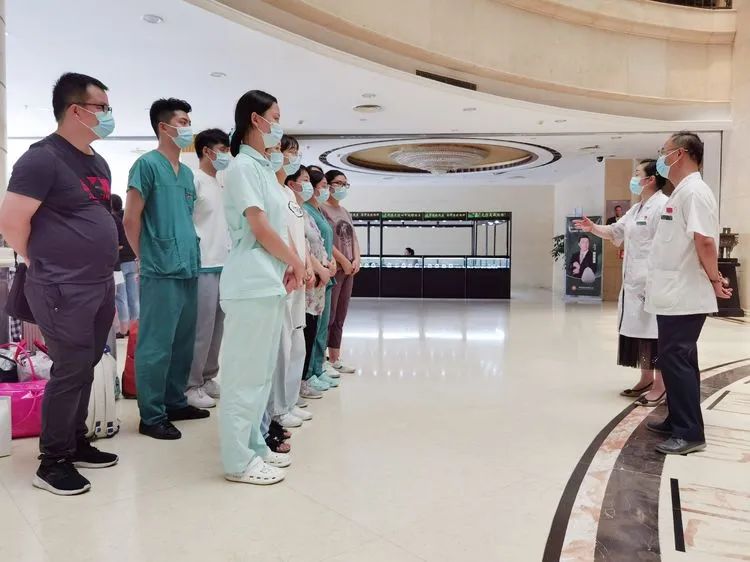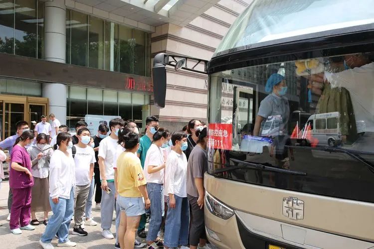 2022年7月15日上午11點,東方醫院集團腫瘤醫院、鳳凰醫院、廣濟醫院、新莊孜醫院共計50名醫護和全市各家醫護共200名醫護登車上前往懷遠支援。