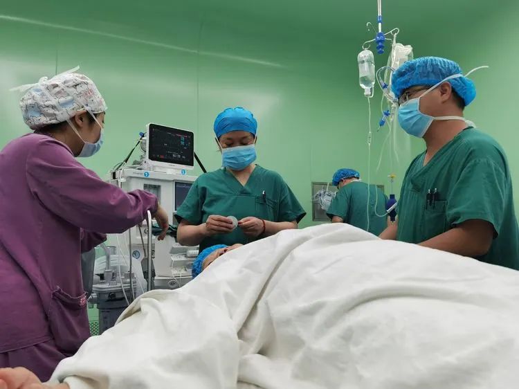 為最大程度的保障術中安全,麻醉科邀請集團麻醉科醫療中心劉侖院長為其實插管全身麻醉,廣濟醫院麻醉科主任蔔美林、朱瑾醫師配合實時監控患者狀态。集團總院普外科醫療中心曹輝主任主刀,經過嚴格的麻醉管理,老人生命體征平穩,在手術室團隊的密切配合下,曹輝主任帶領團隊為其順利行腹腔鏡輔助下乙狀結腸癌根治術。
